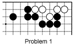 Problem 1: Black has a strong combination that threatens the white group. Where should he play next and what is the best result?