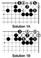 Solution 1B: There are several ways for White to do better than in the previous diagram. The easiest move is 4 in response to black 3. This way, after white 6, it becomes ko when Black captures with 7.