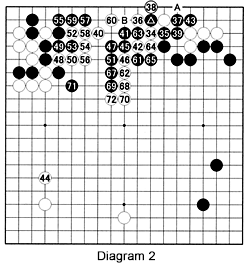 Problem 2: Have another look at Diagram 2. White played at 72, an excellent move. How should Black counter this move?