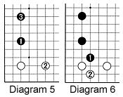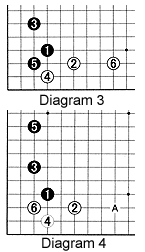 Diagram 4: Black, for example, could play a local move at 5. But what if White played at 6 to take the corner?