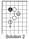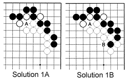 Solution 2: If White plays a move around 1 or A, the exchange of the marked stones becomes bad for Black, because his stone would die, while White's stone expands his territory.