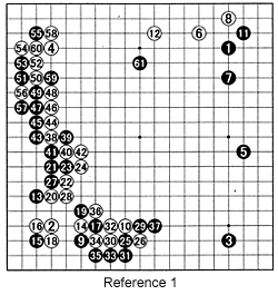 Reference 1: Solution 1B appeared in this game. The game was played between Chang Hao and Wang Lei almost nine years ago--both players are top pros now. As you can see, this led to a fight that covered the entire left side and later spread all over the board.