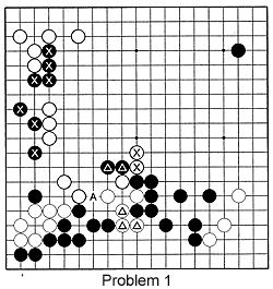 Problem 1: Try to combine all the things discussed concerning the various marked stones and groups. Set the priorities, analyze the variations and decide what Black should do.