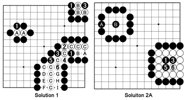 Solution 1A: In response to 1, White must connect at 2. White 4 and 6 are harder to work out. After white 8, the fight seems over, but hold on...