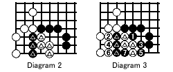 Diagram 4 shows a semeai with Black having three and White four liberties.