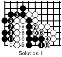 Solution 2D: White has only two liberties left at A and B and even if White plays 14 and a move next to it, Black does not need to respond. Black has a comfortable lead in liberties. This is the situation in which one side has a bigger eye than the other. So there are three general rules: